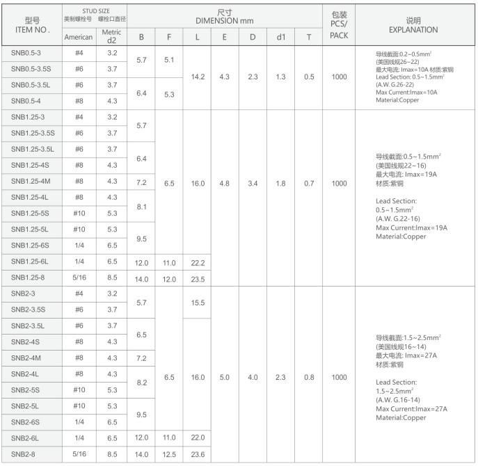 叉形裸端子(SNB)