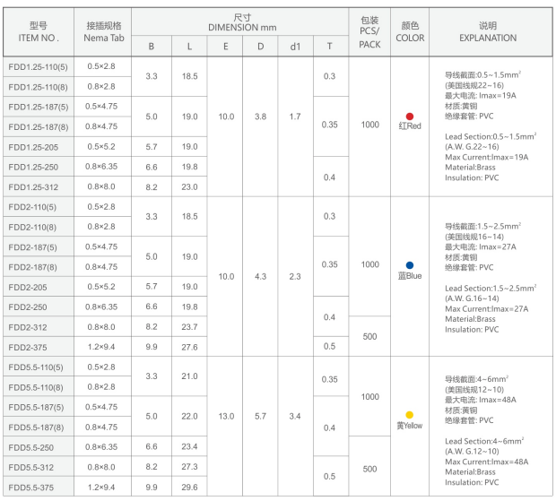 -- 片型裸端子
