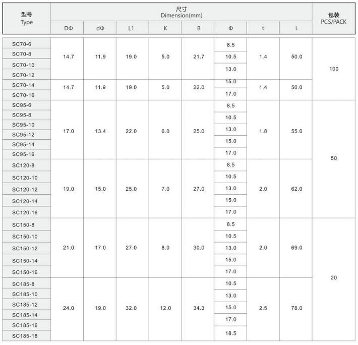 SC窥口系列铜接线端子