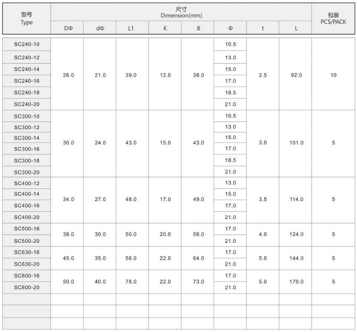 SC窥口系列铜接线端子