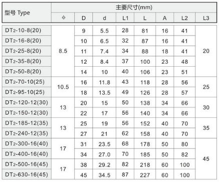 DT2系列铜双孔型接线端子