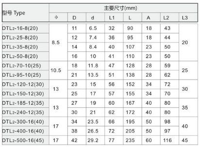 DTL2系列圆头双孔铜铝接线端子